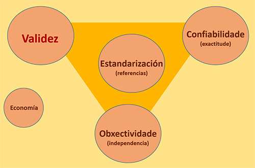 - Obxectividade: debe ser independiente da actitude, percepción ou valoración de quen realiza a proba.
