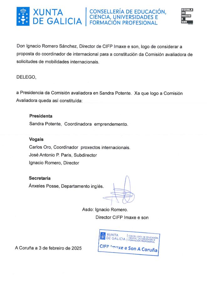 Esta semana foi definida a Comisión de baremación e valoración de solicitudes de mobilidades internacionais_ 24-25.