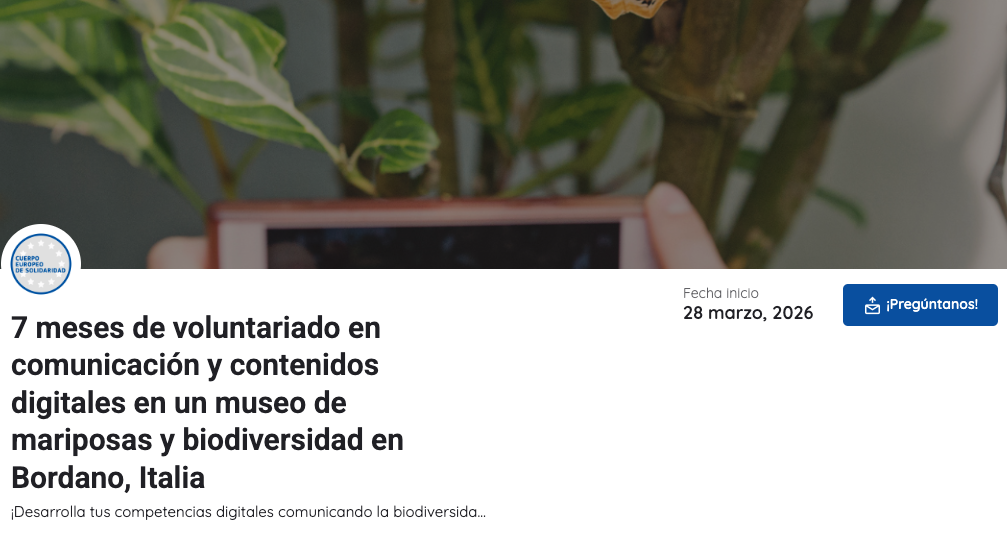 https://yeseuropa.org/plazas/cuerpo-europeo-solidaridad/8-meses-de-voluntariado-en-comunicacion-y-contenidos-digitales-en-un-museo-de-mariposas-y-biodiversidad-en-bordano-italia/
