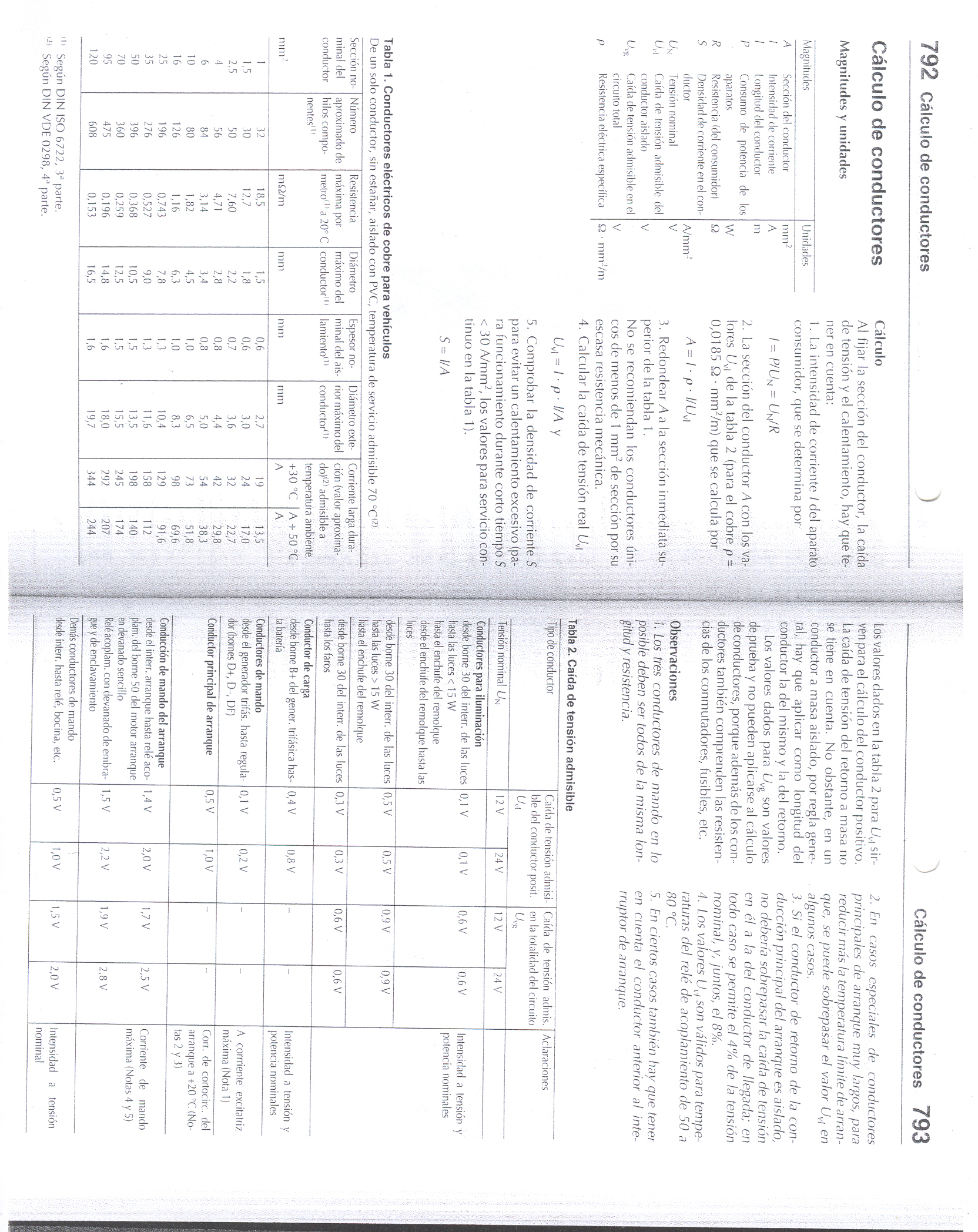 Tabla secciones cable BOSCH