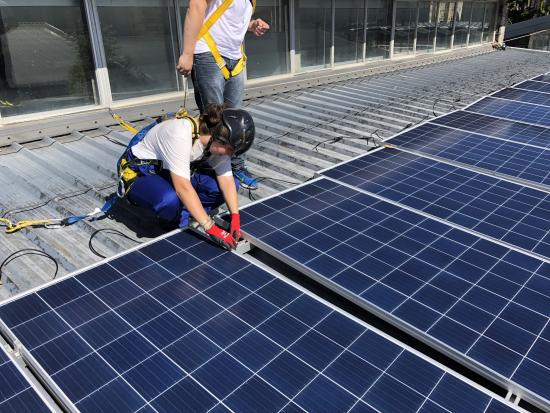 A segunda consistiu nun obradoiro no que se fixo a posta en marcha dunha planta de 1 kW na aula de instalacións solares del I.E.S. Universidade Laboral.