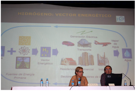 A xornada desenvolveuse en dúas partes, unha primeira no salón de actos, na que os participantes en el Proxecto expuxeron as actividades desenvolvidas durante o Proxecto, así coma os fundamentos técnicos relacionados co hidróxeno e a pila que emprega este combustible para producir electricidade.