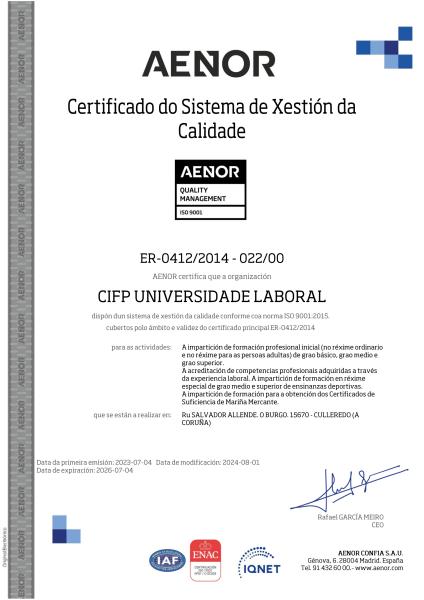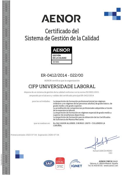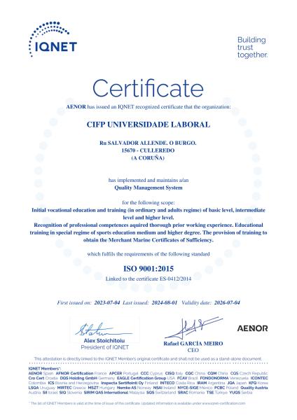 A impartición de formación regrada en réxime ordinario: formación profesional inicial básica, de grao medio e grao superior en réxime ordinario e en réxime das persoas adultas nas familias profesionais de: instalacións e mantemento, electricidade e electrónica, marítimo pesqueira, enerxía e auga, actividades físicas e deportivas. A impartición de formación en réxime especial de grao medio e superior de ensinanzas deportivas. A impartición de formación para a obtención dos Certificados de Suficiencia de Mariña Mercante.