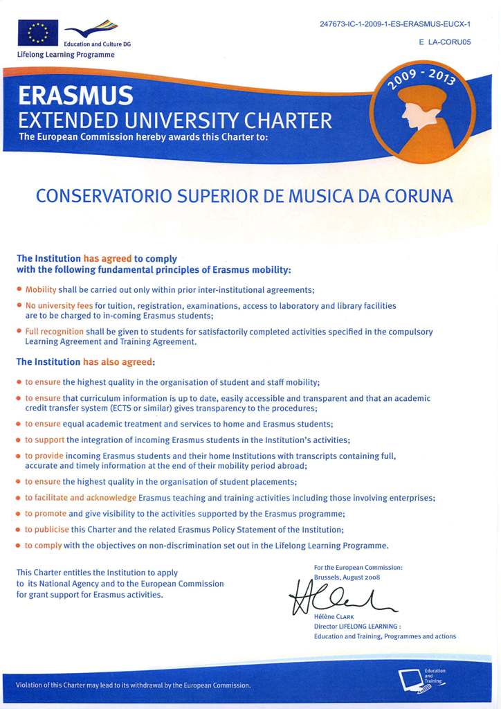 ERASMUS  APPLICATIONS  to Conservatorio Superior de Música da Coruña can be submitted: