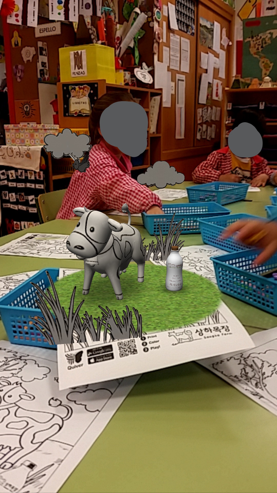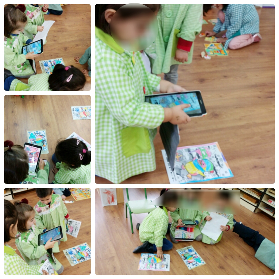 Neste exemplo podedes ver unha actividade desenvolta nunha Escola Infantil con grupos mixtos de 3, 4, e 5 anos no contexto do estudo de diferentes artistas. O alumnado inspirouse nunha obra de arte, tamaño mural. O alumnado de 5 anos encargouse de fotografiar diferentes momentos da actividade. A segunda parte da actividade montada con Aurasma, deseñámola para visionar e compartir coa familia, ensinarlles o produto final e comentar os contidos aprendidos: O autor da obra, o título da obra,como a fixemos, cantas cores usamos, como nos organizamos, como nos sentimos, se nos gustou... A escola facilitou a tablet para aquelas familias que non puidesen descargar o programa.