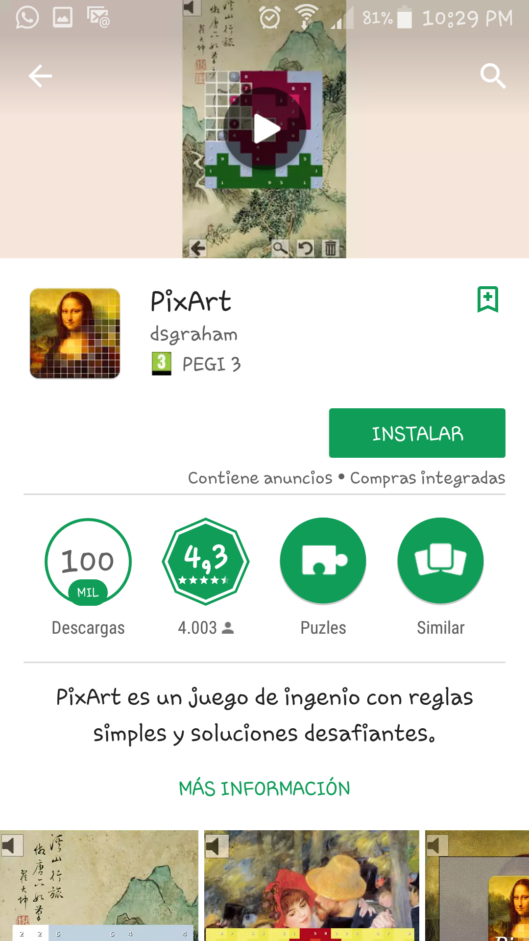 Esta é unha app de xogos: puzzles, nonogramas e sudoku. Hai que usar o dedo para conectar os puntos do mesmo color.