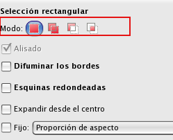Después de realizar una selección dentro de una imagen podemos combinar unas selecciones con otras. Para ello usaremos la Opción Modo de las diferentes herramientas de selección.