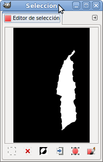 Los botones de la parte inferior sirven para (de izquierda a derecha): Seleccionar toda la imagen; Quitar cualquier selección; Invertir la zona seleccionada; Guardar la selección en un canal; Transformar la selección en una ruta y Trazar la selección.
