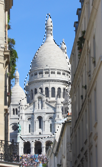 Puedes quitar un trozo de la selección sin perder la selección original, presiona la tecla Ctrl y, a la vez, selecciona el trozo que quieras quitar (observa que al lado del puntero aparece el signo -). Si copias y pegas esta nueva selección obtendrás la imagen siguiente.