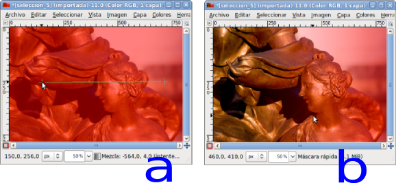 Recuerda que las selecciones activas en la Ventana imagen pueden utilizarse sobre cualquiera de las capas que existan en nuestra imagen.