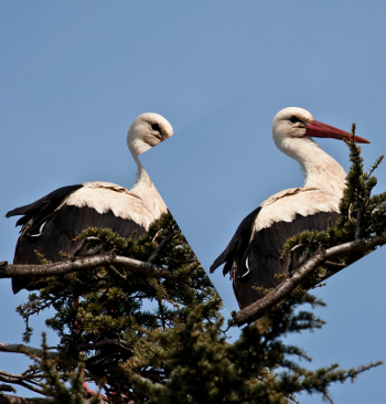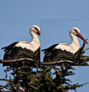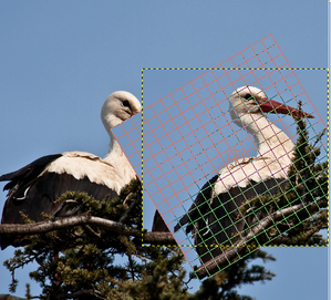 Vamos a utilizar la imagen de la cigüeña, a la que hemos hecho una selección de la cigüeña, copiado y pegado como capa nueva sobre la misma imagen. Ésta última capa es la que vamos a Rotar.