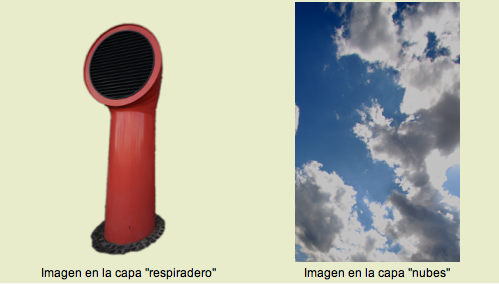 Para comprender los Modos de Combinación de las capas vamos a realizar un ejercicio partiendo de una imagen preparada para este ejercicio. Está compuesta por dos capas que puedes ver a continuación. Las capas están nombradas como "respiradero" y "nubes". Puedes obtenerla haciendo clic con el botón derecho del ratón sobre el siguiente enlace CAPAS y seleccionando Guardar destino como...