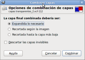 - Haz invisible la "Capa verde". Clic con el botón derecho sobre la capa activa ("Capa roja") y elige Combinar las capas visibles..., aparece la siguiente ventana: