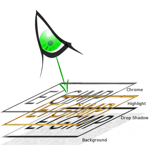 El observador se sitúa en la parte superior y cada una de las capas nos permite ver algo de las inferiores. La imagen que observamos es la combinación de todas las capas que forman esa imagen.