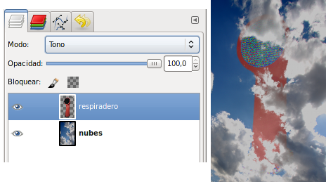 Usando el Modo de Combinación que por defecto usa GIMP, es decir el modo Normal, la imagen obtenida es la siguiente:
