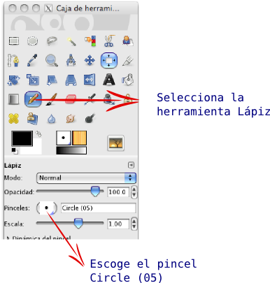 - Coge la herramienta Lápiz