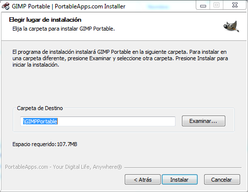 Instalación portable de GIMP