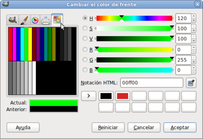 - Por último, clic en Aceptar para poner el color que figura en la casilla Actual como Color de frente.
