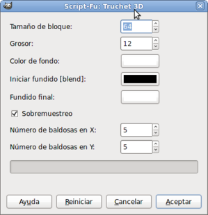 Accede a Archivo --> Crear--> Patrones --> Truchet 3D. Aparece la ventana del Script-Fu con distintas opciones, pero en esta ocasión vas a dejar todos los valores tal y como están. Simplemente presiona Aceptar.