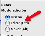 Opciones de la herramienta Rutas para proceder a la edición de las mismas.