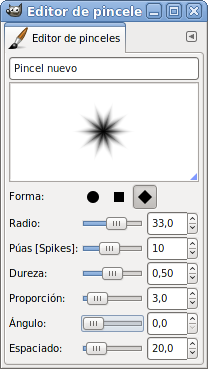 - Haz clic en el icono de Pincel nuevo y pon el nombre, para poder localizarlo en la Ventana de pinceles.