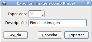 Archivo --> Exportar como... Pon al archivo el nombre de "imagen" y elige la extensión *.gnr. Debes guardar la imagen en la carpeta correspondiente a los pinceles (brushes). Acepta.