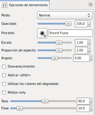 Puedes elegir cualquier brocha de las instaladas en GIMP para pintar con color sólido o con degradados. Las opciones de la herramienta contienen muchas posibilidades.