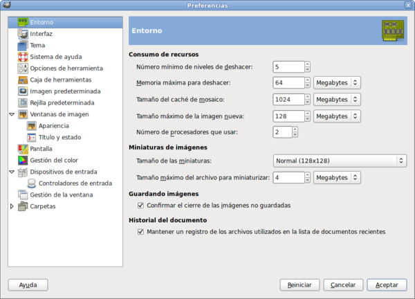 Preferencias de GIMP