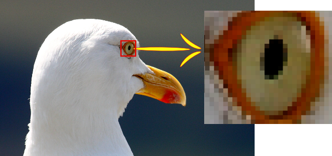 Cada uno de los cuadrados que se observan en la ampliación de la zona marcada en rojo en la anterior imagen es un píxel.