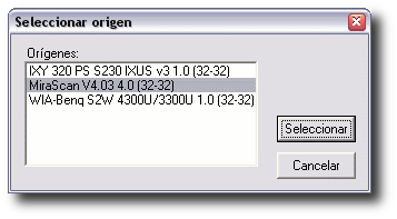 Al hacer clic en Seleccionar se pone en marcha el programa de nuestro escáner donde debemos buscar y elegir valores similares a los que podemos ver a continuación: