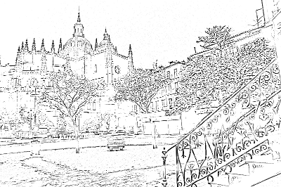 - Puedes transformar el dibujo a color si lo cambias al modo de color RGB. Accede, después, al menú Colores --> Colorear; mueve las opciones de Tono y Saturación para obtener: