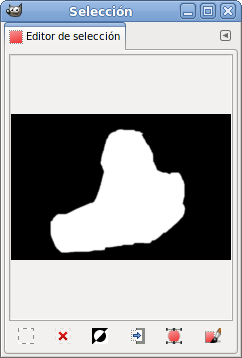 - Difumina la selección 5 píxeles. Seleccionar --> Difuminar 5 píxeles e invierte de nuevo la selección. Si observas el Editor de selección (menú Diálogos --> Editor de selección) verás qué zona de la imagen es la seleccionada (aparece en color blanco).