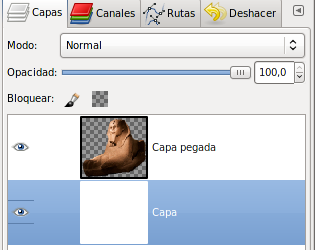- Copia esta selección (Ctrl + C) y accede al menú de la Ventana Imagen, Editar --> Pegar como --> Imagen nueva. Acabas de crear una imagen que contiene una sola capa. Crea una nueva capa con fondo blanco y sitúala debajo de la capa que contiene la figura.
