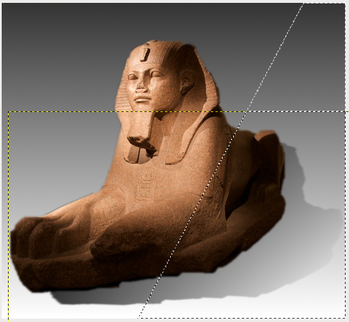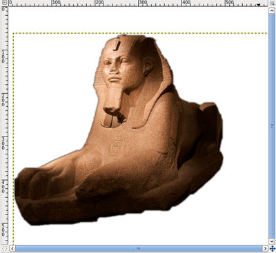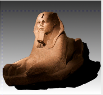 Abre la imagen "taller_04.jpg" en GIMP y pon el Zoom al 100%. Lo primero que vas a hacer es obtener una capa que contenga exclusivamente la escultura. Utilizando la herramienta de Selección que creas conveniente realiza una selección de toda la escultura. Después utiliza la opción Seleccionar --> Invertir.