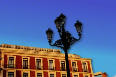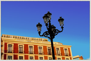- Primero debes configurar las opciones de la herramienta Varita mágica. Queremos seleccionar toda la zona del cielo y allí existen diferentes tonos de azul. Vas a poner 50 como valor de Umbral. De esta forma incluimos en nuestra selección 50 de los 256 posibles valores que tiene el color azul. Haz clic en cualquier lugar del cielo. Las zonas del cielo incluidas dentro de la farola no se añaden: añade estas zonas a la selección.