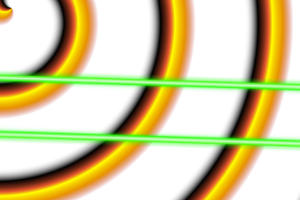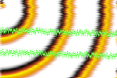 En la imagen "líneas.xcf" inicial, selecciona la capa "línea 1". Aplica el filtro Distorsiones --> Desplazamiento -->, Desplazar horizontalmente con un valor de 30 píxeles. Posteriormente realiza un Desenfoque gaussiano con valor 5 píxeles.
