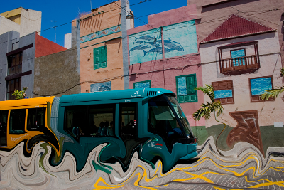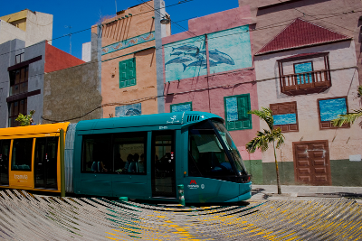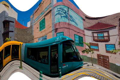Partiendo de la imagen original (sin modificaciones) "filtros_6.jpg", selecciona a mano alzada toda la parte correspondiente a la parte inferior (sin llegar al tranvía). Aplica a esa zona el filtro Ondas u Ondular. A la siguiente imagen se le aplicó un filtro Ondas con el Modo: Manchar, Amplitud de 30, Fase de 90 y 7 de Longitud de onda.