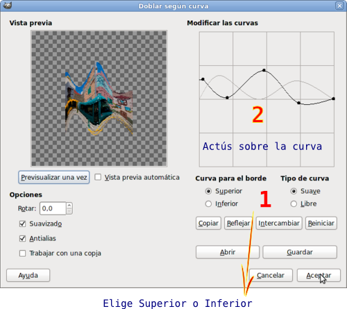 Sobre la imagen "filtros_6.jpg" y con el filtro de Distorsiones --> Doblar según curva intenta conseguir la deformación que se observa en la imagen.