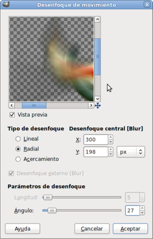 - Lineal, hace que parezca que sopla viento. Puedes elegir el ángulo con que el que incide en el objeto a desenfocar.