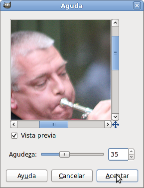 En la ventana de Vista previa puedes comprobar el efecto del filtro antes de aplicarlo. La agudeza es controlada por la barra deslizadora, si bien no es conveniente poner un nivel excesivo porque puede parecer antinatural.
