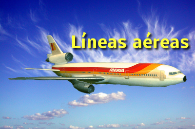 - Crea el texto "Líneas aéreas" con un tipo de letra suficientemente grande para que ocupe el espacio del avión y con color negro. Duplica esa capa de texto.