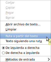 derecho sobre el texto y en las opciones que aparecen, elige Ruta a partir del texto: