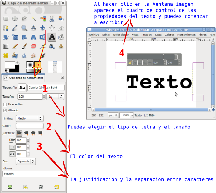Para introducir texto en GIMP utilizamos la herramienta Texto