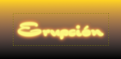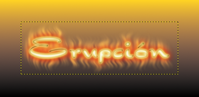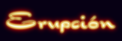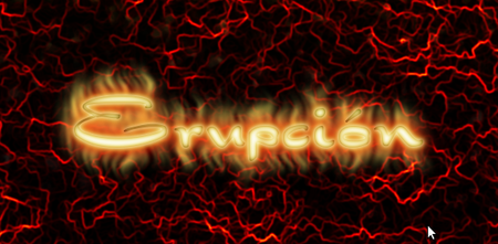 Aplica el Logotipo Calor resplandeciente con la fuente Dragon que puedes obtener desde aquí (haz clic derecho y elige la opción Guardar destino como...), y con un tamaño de 100 y escribe "Erupción".