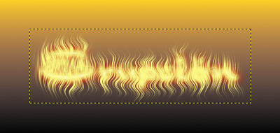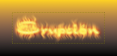 - A la capa que se obtiene denomínala "texto". Duplica esta última capa con el nombre de "fuego1", activa Bloquear transparencia para preservar las zonas transparentes. Selecciona un color de primer plano con un amarillo más claro que el que tenemos de fondo. Por ejemplo: Rojo 251 Verde 247 Azul 128.