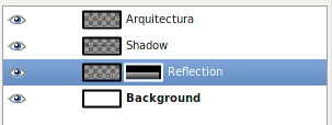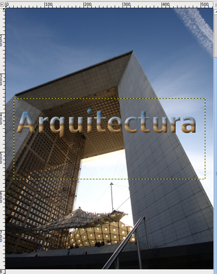 - Solamente nos interesa la capa llamada "Arquitectura". Esta capa vamos a llevarla sobre la imagen obtenida anteriormente. Con esta imagen abierta en GIMP accede a la Ventana Capas- Pinceles y mueve la capa a la imagen del edificio. Éste es el resultado: