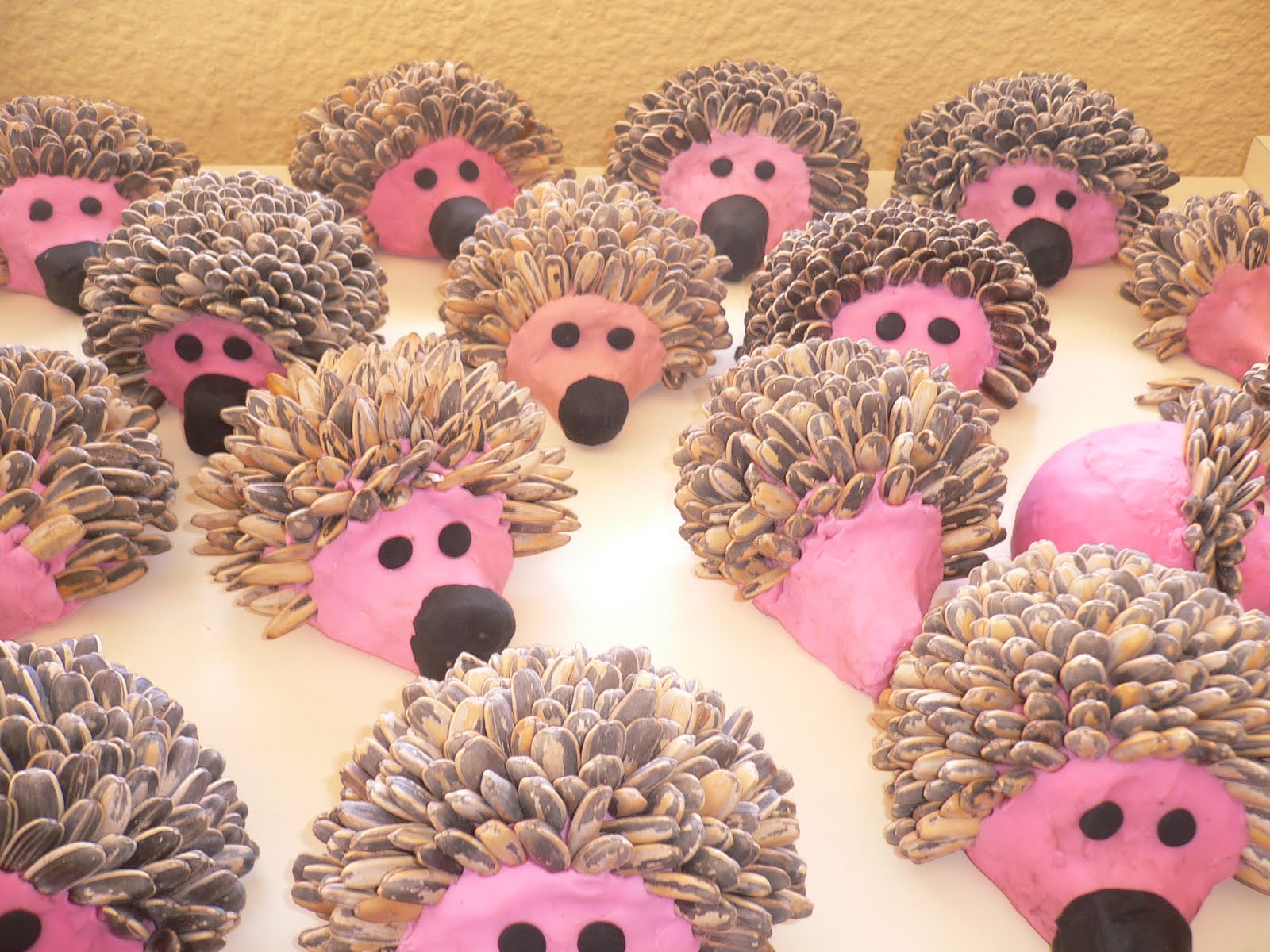 Elabora un ourizo para a decoración de outono usando Plastilina e Pipas de Xirasol. Observa os exemplos: