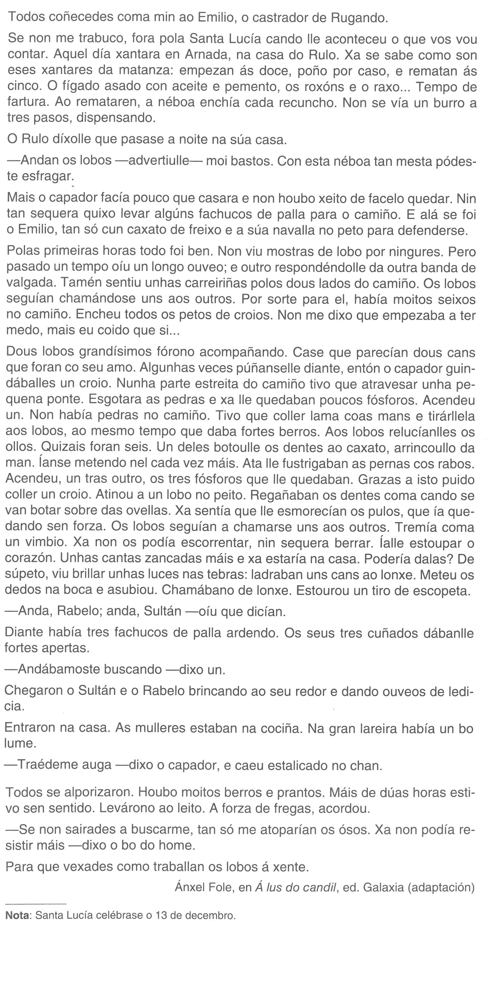 Le o relato "Os lobos" de Ánxel Fole e contesta as actividades que che propoño.