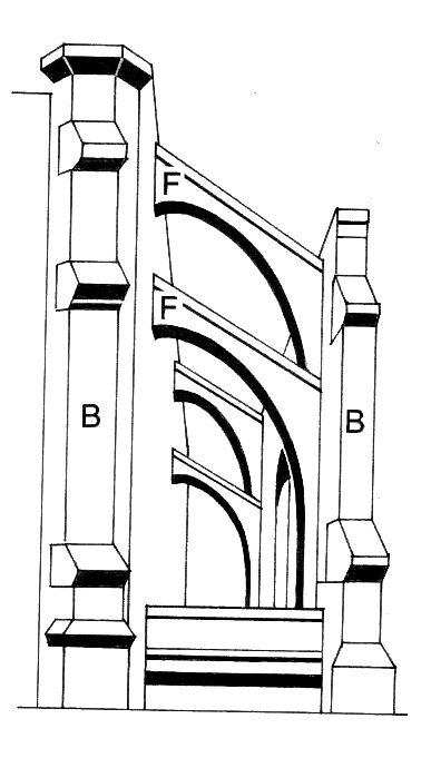 - Contrafuerte: es una estructura de soporte externa a un edificio que se utiliza para contrarrestar la presión lateral que ejerce una pared o una bóveda. Suele ser una columna de forma prismática que se extiende desde la base hasta la parte superior del edificio. Los contrafuertes son comunes en la arquitectura de estilo gótico y se colocan estratégicamente para reforzar las paredes y mantener la estabilidad de la estructura.