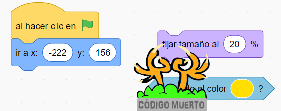 "Es aquel código que está en el área de programación pero no está conectado a ningún otro bloque ni tiene un evento que lo active..."